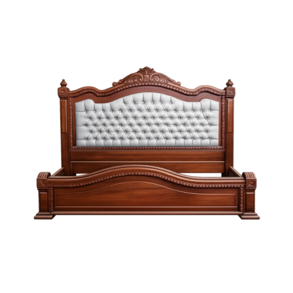 El detalle acolchado en tono claro crea un contraste elegante con la calidez de la madera, brindando un estilo atemporal ideal para espacios tradicionales, contemporáneos o de inspiración europea.